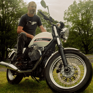 Chris Hunter and his Moto Guzzi V7 Classic motorcycle