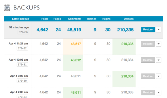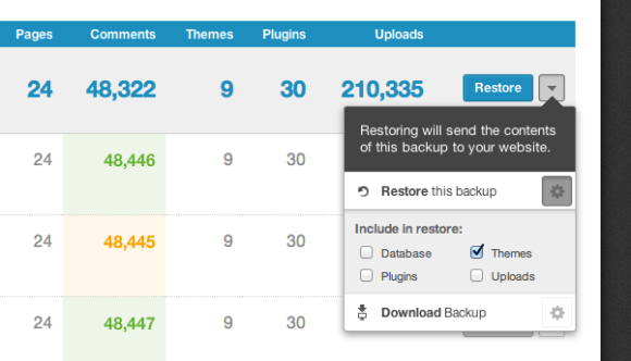 If the bad guys hack your site, you might need to do a full restore, and VaultPress customers know we’ve got their back there. But, what if you’ve accidentally modified your theme? What if an updated plugin starts to misbehave and you’d like to revert to the previous version? VaultPress now allows you to choose what you need to restore and nothing more, to help you get your site and your revenue stream back up and running as quickly as possible.