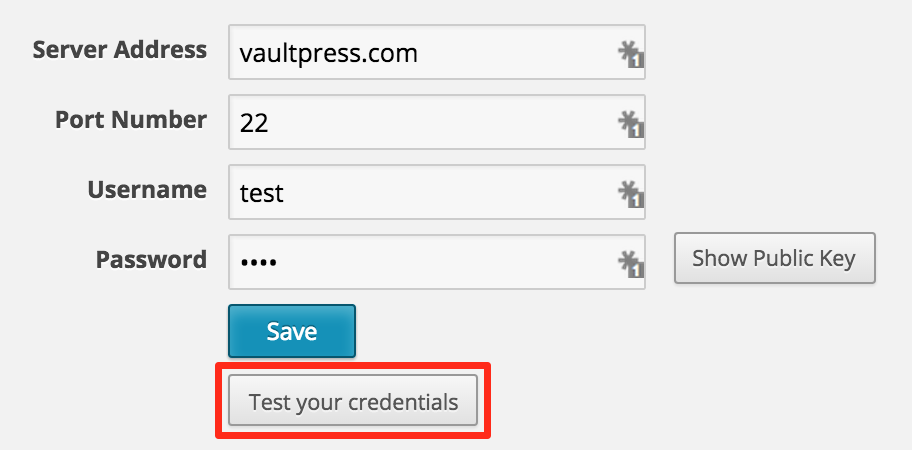 Before you run a restore, there are certain best practices we recommend you follow. One of the lesser known tips involves testing your credentials before you run a restore! Instead of having to do this manual, you can run a test designed for VaultPress restores from within your Settings page of the VaultPress dashboard. To do this, just click into the credentials you want to test and then select “Test your credentials”: